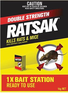RATSAK Double Strength Bait Station is a no-fuss, multiple feed pellet bait in a ready to use bait station, so no need to touch bait.